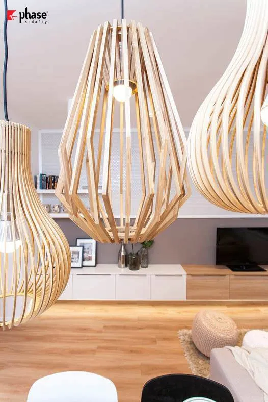 Ústredným detailom bytu je trojité svetlo, z drevenej konštrukcie. Vytvára celkové „prírodné“ pôsobenie bytu. Zaujímavé osvetlenie nám pomôže dotvoriť interiér a dodať mu príbeh, ktorý chceme mať. 😉