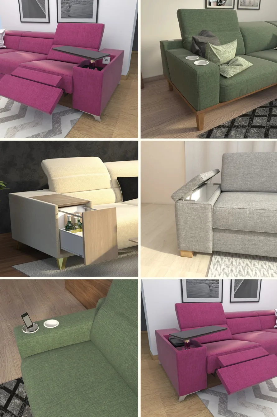 Dnešné obývačky často slúžia ako pracovne. Ak je to aj váš prípad, potom je pre vás ako stvorená sedačka s podrúčkou, z ktorej ľahko vysuniete držiak na tablet či mobil (modely MODENA, MATERA, AVILA, NEAPOL). Štandardom je aj zabudovaná elektrická a USB zásuvka, ktorú nájdete napríklad v sedačkách MATERA, TAORMINA, MODENA či AVILA. Spoločenské typy ocenia na sedačke podrúčku s chladničkou (AVILA), držiakom na poháre (MATERA) a barom, do ktorého sa zmestí až 12 fliaš (MODENA). Sedačky, ktoré sa vedia premeniť aj na posteľ, sú dnes už celkom bežné. S našimi rozkladacími modelmi NEAPOL či MADRID si môžete byť istí, že sa pri večernom alebo rannom ustielaní nenatrápite.