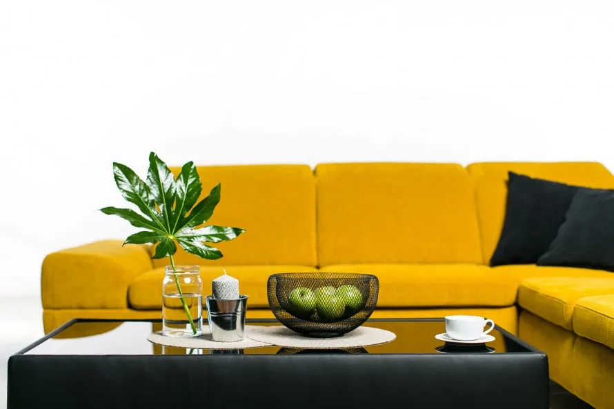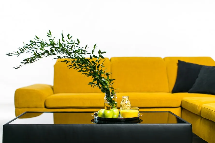 Jeden z trendov roku 2016 sa volá trend ENRICH, ktorý sa vyznačuje energickosťou. Typické sú svieže farby, ktoré útočia na zmysly. Preto som zvolila žltú sedačku s kontrastnými tmavými vankúšmi, ku ktorým som doladila čierny konferenčný stôl OHIO.