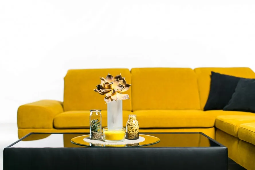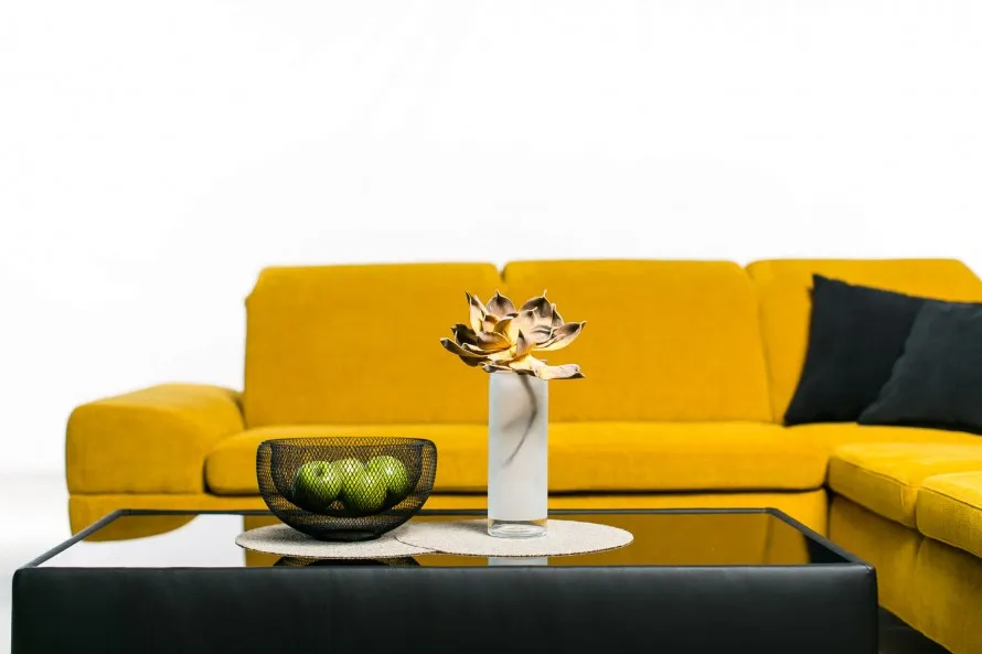 Pre jeden z interiérov, ktoré Vám prinášame, som zvolila model sedačky IMOLA. Je to naša novinka roku 2016. Sedačka je v zostave 3sed ľavý a otoman pravý (rozmer udávame z ľavej strany ako sa pozeráte na sedačku = 277x228cm ). Žltá farba je trendová, osvieži naše domovy a preto sme sedačku IMOLA vyrobili v materiáli žltej farby – Endurance, číslo materiálu 141. Materiál sa vyznačuje antialergickou úpravou. Nájdete ho exkluzívne len v predajniach PHASE a jeho ďalšou výhodou je 5 ročná záruka, ktorú Phase na materiál poskytuje. Náš celkový dizajn značky PHASE sa vyznačuje eleganciou a preto v prvej ukážke, ako môžete vidieť na obrázku nižšie, sme ostali v tomto štýle.