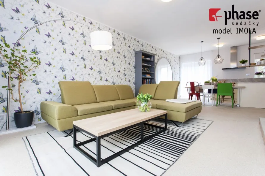 Klasický dom, blízko rybníka, kde býva veľká rodina, sa stal miestom hlavnej premeny. Obývačka s kuchyňou, ktorá bola tmavá, nedokončená, prešla poriadnou zmenou a zo smutnej miestnosti sa stala veselá obytná zóna pre celú rodinu. Celý priestor oživila naša dominantná sedačka IMOLA, ktorá je novinkou roku 2016.