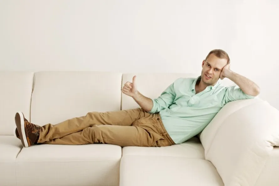 Nie, nie! Sedačka musí byť obrovská a masívna, aby sa na nej dalo práve s tými hubenými a dlhonohými poriadne vyvádzať.