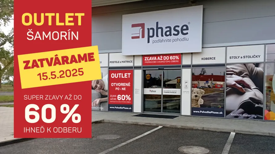 radi by sme vás informovali, že od 15. mája 2025 bude predajňa OUTLET PHASE ŠAMORÍN pre verejnosť trvalo zatvorená.