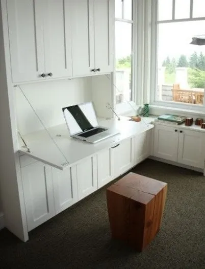 Do skrine vyrobenej na mieru, môžete skryť takmer čokoľvek. Jednoducho tam skryjete aj váš osobný pracovný priestor. Zdroj: pinterest.com