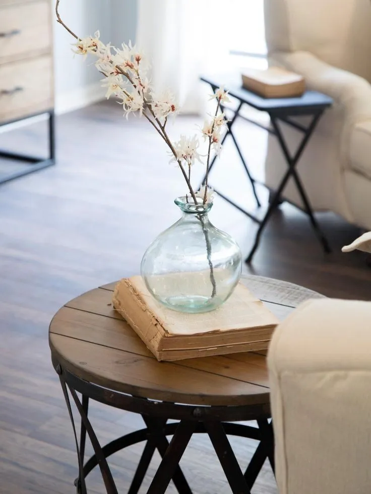 Do malého obývacieho priestoru stačí dať menšie odkladacie stolčeky a premiestňovať ich v priestore podľa potreby. Zdroj: pinterest.com