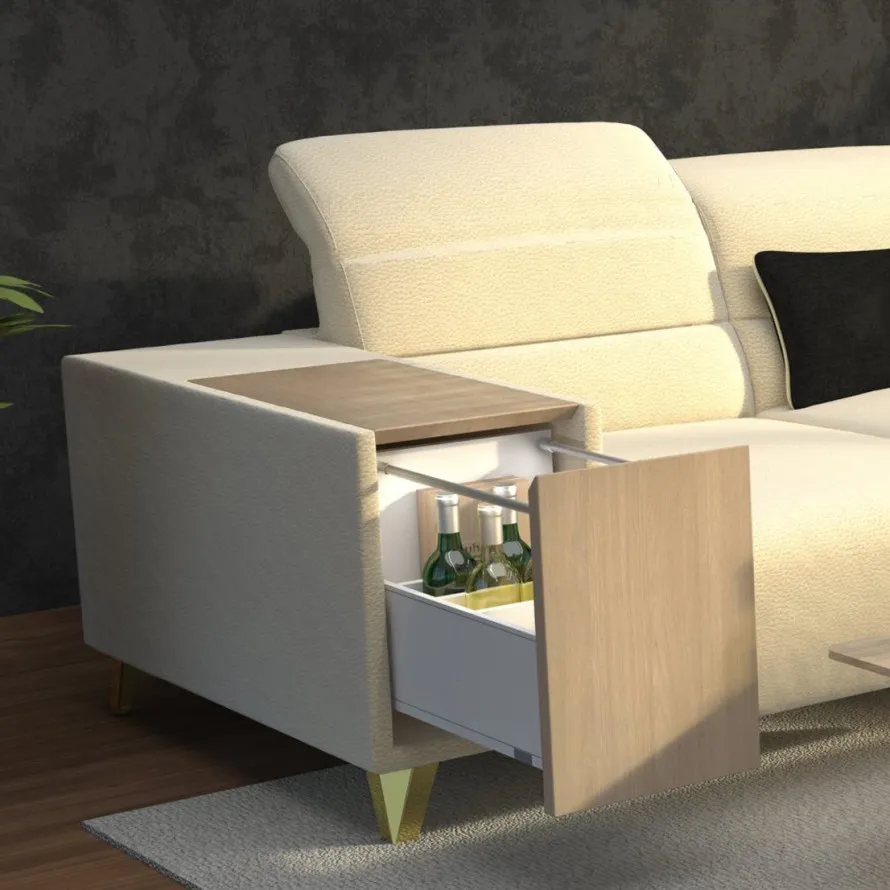 Ďalšou vychytávkou je voliteľná podrúčka s úložným priestorom a praktickým otočným stolíkom, elektrickým pripojením a USB portom.