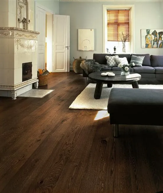 • Hnedé podlahy: Hnedý odtieň u podláh musí v porovnaní so stenami vždy zostať v pozadí. Hnedá farba nie je mdlá, je univerzálny a hodí sa do mnohých rôznych interiérov za predpokladu, že do miestnosti preniká dostatok svetla, aby túto farbu vyzdvihlo do popredia. Hnedá sa skladá z niekoľkých ďalších farieb, čo znamená, že ju možno kombinovať s mnohými ďalšími farbami. V niektorých interiéroch sa kombinujú komplementárne farby pre podlahu a steny s úmyslom dosiahnuť kontrastu. V iných situáciách sa dáva prednosť kombináciu tón na tón. Tón na tón znamená, že sa kombinujú odtiene rovnakej farby, ale v tmavšom a svetlejším prevedení. Možno tým vytvoriť veľmi harmonické a kľudné efekty, môže to však prejsť do monotónnosti.